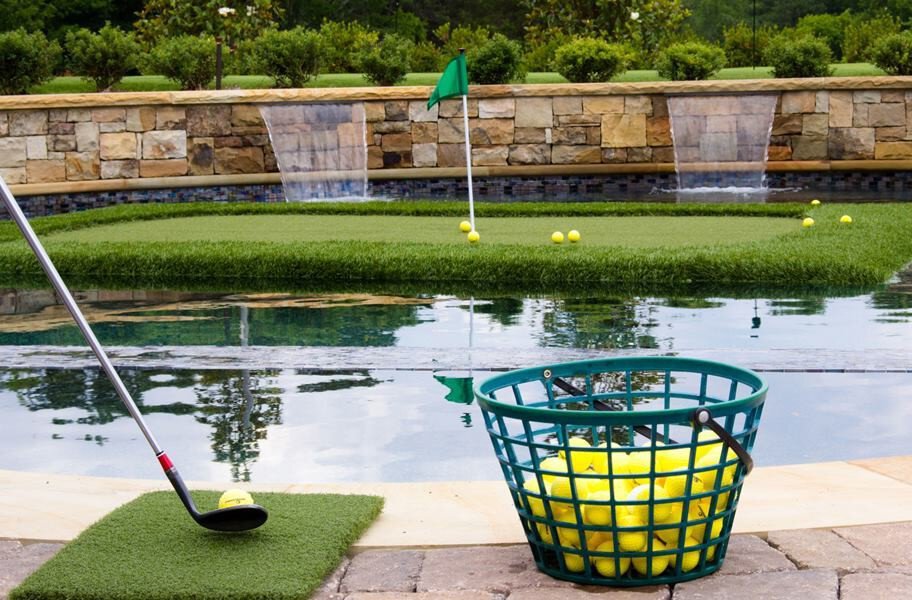 Pool time will never be more fun than when you have our Floating Putting Green Mats XL in your pool. Who needs basketball or volleyball, when you have a putting green in your pool. Pool parties now will have a cool twist that everyone will be talking about all summer long. These floating putting green mats are constructed with high-quality artificial grass over a recycled foam backing and are made right here in the USA. Each mat comes with 12 floating golf balls, a 12" x 24" hitting mat, a flagpole with a flag, and a 4" cup, and a 1-year warranty backs our artificial grass mats. Material - Polypropylene with a foam backing Size - Our Floating Putting Green Mats XL are available in the following sizes: 8'x12' (comes with attached rough) and 14'x14'. Thickness - 4" Face Weight - 30 oz Weight - Our 8'x12' mat is 79 lb and our 14'x14' mat is 113 lb