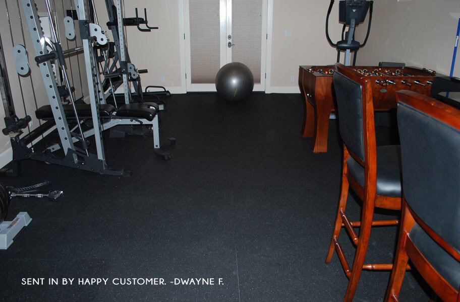 Recommended Uses: Our Eco-Flec Rubber Rolls are great as gym flooring for any home gym or commercial gym and are commonly used as flooring in basements, as fitness flooring, as underlayment, as flooring in walkways, and anywhere a non-slip flooring option is desired.
