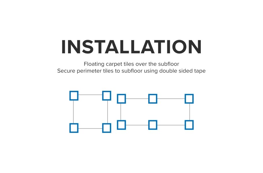 Our floating carpet tile tabs allow for easy creation and installation of your new carpet tiles. Whether you are putting together a carpet tile area rug or doing a wall to wall installation, you can use our Floating Carpet Tile Tabs. Tabs can be used to adjoin 4 cornering tiles, and also cut in half to adjoin to perimeter tiles. Material - Non toxic and odorless, this single sided pressure sensitive tile adhesive tab provides easy installation Tab Size - 3" wide x 3" long. Quantity - One sheet / one order includes 20 sticky tabs.
