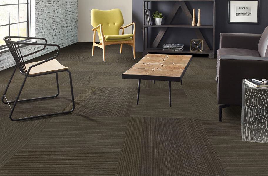 Shaw's Disclose Carpet Tile features a beautiful and unique medium scale organic design with a touch of linear look. The attractive and subtle color selection is perfect for any home or office, and the modular format provides a flooring that can be easily pulled up and replaced if a single tile were to get damaged. This tiles is designed to match with Document and Declare carpet tiles as well, and can be designed any which way with no dye lot issues. Backed by a 10 year limited commercial warranty.