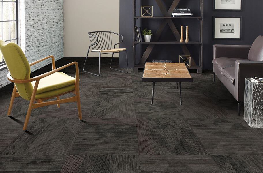 Shaw's Declare Carpet Tile features a unique combination of linear and hidden angular shape patterns that are sure to look great in any space. Available in several subtle color options that are perfect for residential or commercial use. This tiles is designed to match with Document and Disclose carpet tiles as well, and can be designed any which way with no dye lot issues. Backed by a 10 year limited commercial warranty.