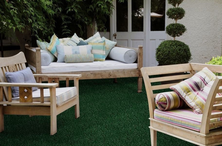 You will have blue skies smiling at you daily with our Spring Time Turf Rolls on your patio, balcony, or rooftop deck. Easy to install and maintain, these fake grass rolls are the perfect doggy potty or puppy training pad for any urban jungle. Easily sanitize our Spring Time Turf Rolls with our Turf Fresh, ensuring your turf will smell fresh and clean day in and day out. A 5-year warranty backs our Spring Time Turf Rolls. Material PP fiber Color Olive/Field Green Width 12' Thickness Approx. 7 mm Face Weight Approx. 10 oz Weight Approx. 0.30 lb per sq-ft. Application Indoor/Outdoor Drainage Yes Length Custom (max. 82') UV Stable Yes Warranty 5 years Heat & Frost resistant Yes