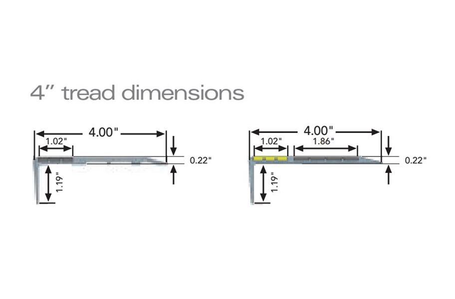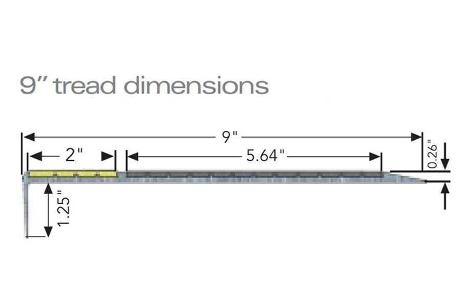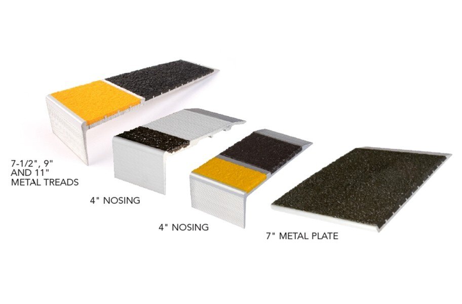 FlexTerior Metal Stair Tread & Nosing are the perfect indoor or outdoor stair covering for your specific job. These aluminum stair treads are great for rugged, commercial conditions and provide a slip resistant surface that is built to last. Stair Treads are optimized for the visually impaired and are ADA compliant. Material - Extruded heat-treated aluminum that is resistant to corrosion with anti-slip epoxy coating with mineral abrasive grits, Length - Available in sections at 36" & 48", Nose Type - Square Width - 9" Tread or 4" Nosing.