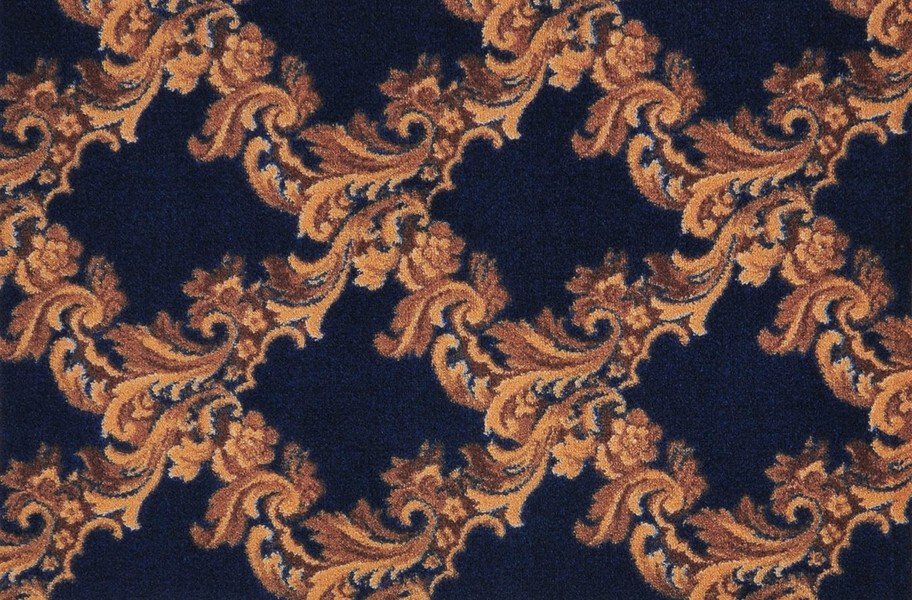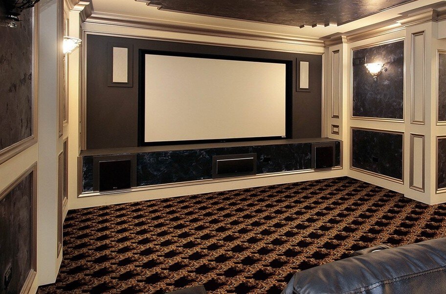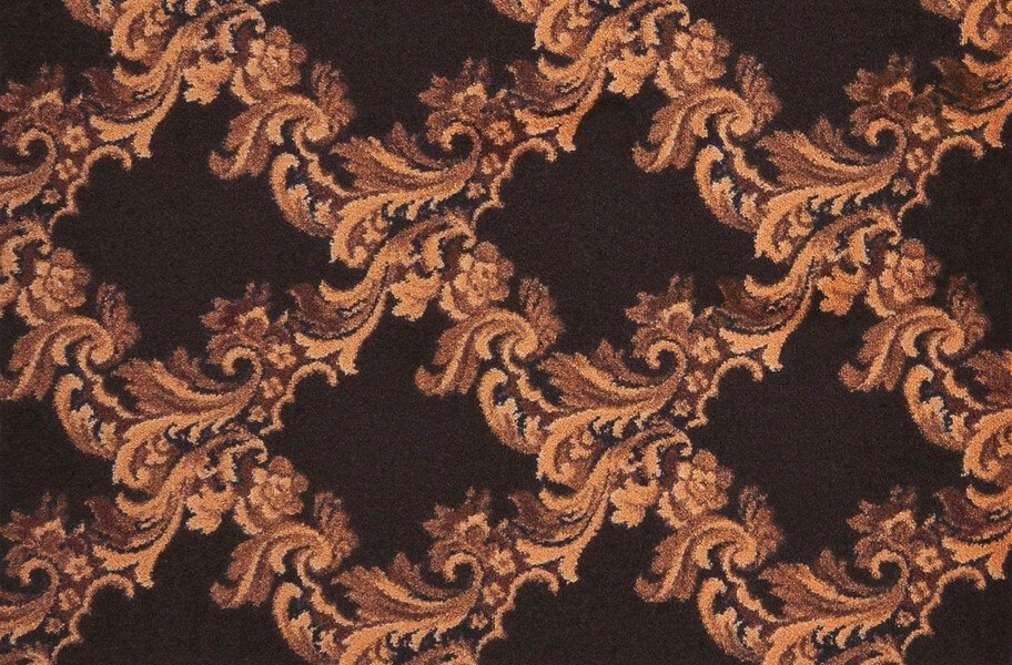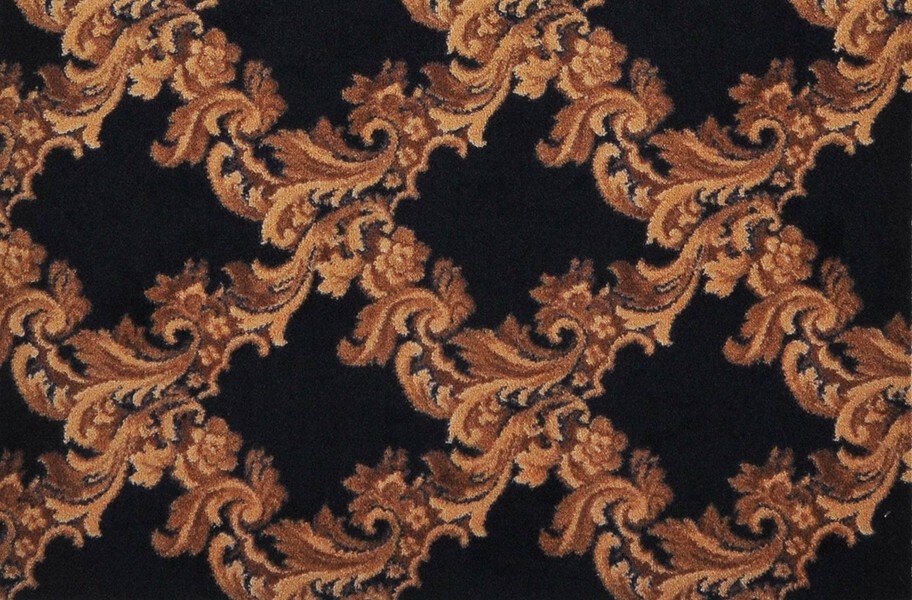 Joy Carpets Corinth Carpet uniquely blends the luxurious look of a floral scroll design with the appeal of a classic trellis pattern for an attractive and distinctive aesthetic. Corinth broadloom carpet is great for movie theaters and home theater rooms with its timeless design and ease of maintenance, ensuring you can comfortably enjoy the show.
