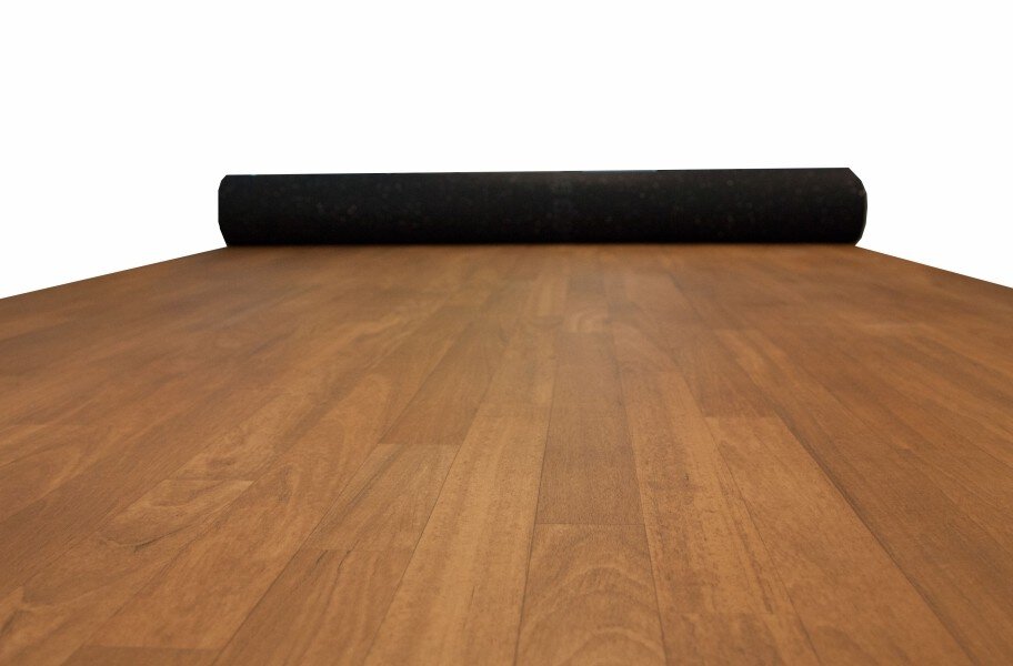 Material: 2mm heterogenous vinyl sheet over top 5mm recycled rubber underlayment.