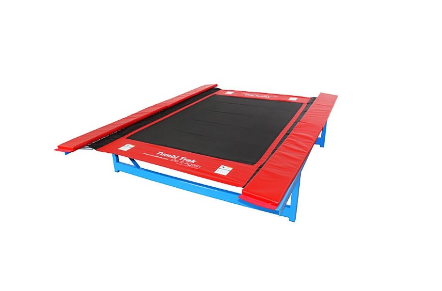 Tumbl Trak is the original equipment used by gym clubs and cheerleading programs designed for athletes to practice repeated tumbling and gymnastic activities. The product reduces stress on body parts and can be used by both beginner and experienced gymnasts. The price of the product includes frame, bed, springs, pads, spring tool, and a training video. Additional accessories provided are frame bar, quick flex bar, cross supports, vault blocks, side pads, and inclines, making it a to-go product for athletes looking to learn and practice new skills and routines. Material - Bed is made of Polypropylene material with a heavy duty steel frame and high grade powder finish. Pads are made of knife coated vinyl and EVA foam. Width - Frame width is 7'. Bed width is 5'. Length - Available frame/bed lengths are 10', 20' 30', 40', 50', 60'. Height - Frame height is 1.75'. Weight - 7' x 10' weighs 235lbs, 7' x 20' weighs 500lbs, 7' x 30' weighs 770lbs, 7' x 40' weighs 1020lbs, 7' x 50' weighs 1260lbs, 7' x 60' weighs 1545 lb