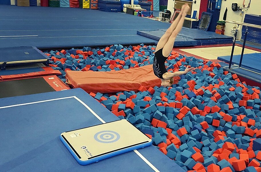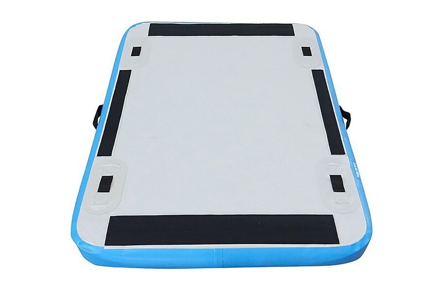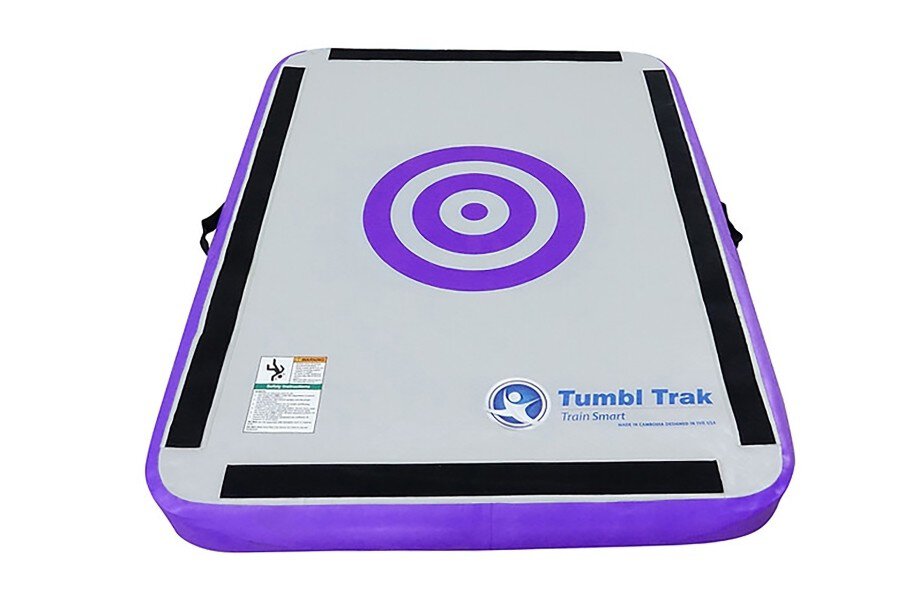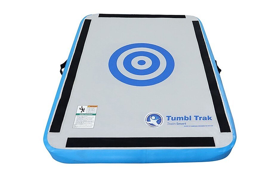The Launch Pad is a new and improved portable training equipment for young tumblers. It has a variety of uses and can be easily moved due to its lightweight construction. Gymnasts can easily practice round-offs, back tucks, standing fulls, front saltos, and front and backward vaulting. The Launch Pad features a durable and strong denim cover with a target design in the center. The product also has non-skid material attached on the bottom making it sturdy and less prone to movement and includes velcro for secure connection to other mats and a hand pump is provided for inflation. Material - Vinyl. Measurement - 3' x 4' x 4". Weight - 15 lbs