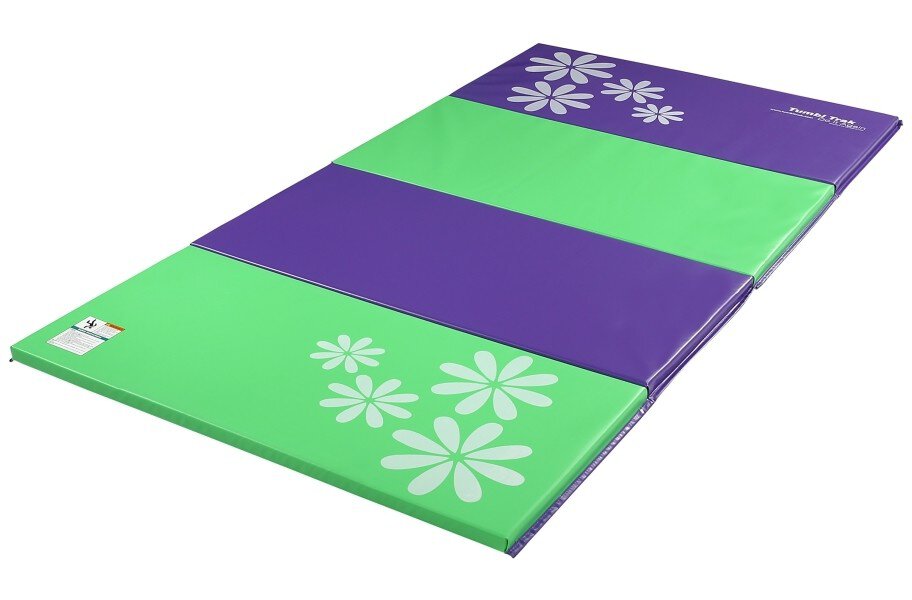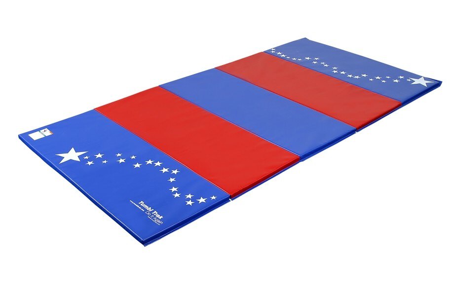 Tumbling Mats by Tumbl Trak are undoubtedly among the highest-quality tumbling mats available on the market today, trusted by thousands of coaches and schools around the world. These mats are extremely popular because of their vibrant colors and durability. The Tumbling mats are perfect for a variety of activities like gymnastics, cheerleading, dance, martial arts, special needs, yoga, pilates to name a few. Each mat is foldable, making them easy to carry, transport and store at home or at the gym. These mats are also called Panel mats because they easily fold into panels. Parents please note: these tumbling mats are firm to help kids practice surefooted tumbling and are not appropriate for cushioning falls or landings.. Material - 18 oz knife-coated vinyl and high-quality crosslink foam. Available sizes - 4' wide x 6' long x 1-3/8" high, 4' wide x 8' long x 1-3/8" high, 5' wide x 10' long x 1-3/8" high, 4' wide x 6' long x 2" high, 4' wide x 8' long x 2" high, 5' wide x 10' long x 2" high. Folding panels are each 2' wide. Weight - 4'x 6'x 1-3/8" weighs 15 lb, 4'x 6'x 2" weighs 17 lb, 4'x 8'x 1-3/8" weighs 19 lb, 4'x 8'x 2" is 22 lb, 5'x 10'x 1-3/8" weighs 28 lb, 5'x 10'x 2" weighs 34 lb