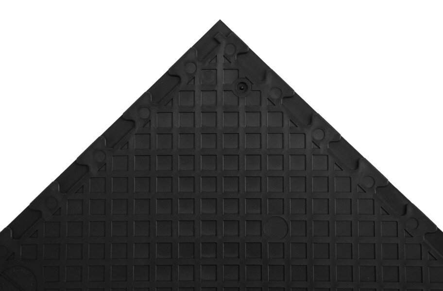 Installation of interlocking tiles is very simple and typically done by the consumer. Typical installation of these tiles is as follows: First, clean your sub floor so it is free of all dirt, grease or debris. Snap a chalk line on the sub floor 24” from one wall in your room. Snap another chalk line on the subfloor 24” from an adjacent wall. You should now have a pair of perpendicular lines making an approximate 90-degree angle. Begin laying the interlocking tiles along the chalk lines, snapping the locks together as you go. Leave the perimeter of the room open until the field is installed. After the field is covered, go back and cut in lines along the walls in the room. Leaving a gap at the wall roughly the thickness of tiles being used is recommended to account for expansion and contraction of the floor tiles in varied temperature ranges.