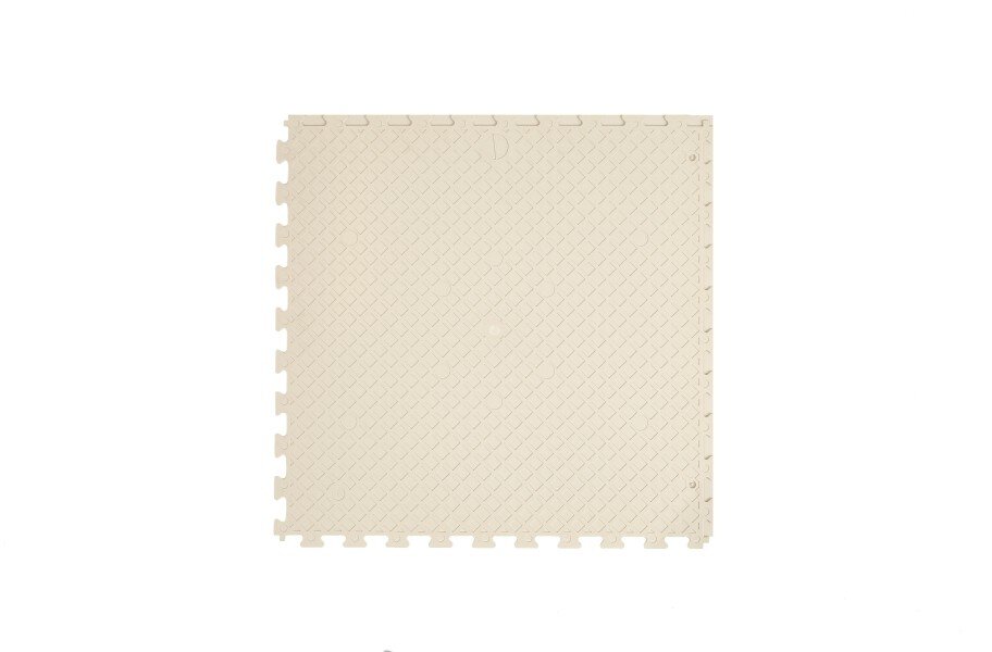 Installation of interlocking tiles is very simple and typically done by the consumer. Typical installation of these tiles is as follows: First, clean your sub floor so it is free of all dirt, grease or debris. Snap a chalk line on the sub floor 24” from one wall in your room. Snap another chalk line on the subfloor 24” from an adjacent wall. You should now have a pair of perpendicular lines making an approximate 90-degree angle. Begin laying the interlocking tiles along the chalk lines, snapping the locks together as you go. Leave the perimeter of the room open until the field is installed. After the field is covered, go back and cut in lines along the walls in the room. Leaving a gap at the wall roughly the thickness of tiles being used is recommended to account for expansion and contraction of the floor tiles in varied temperature ranges.