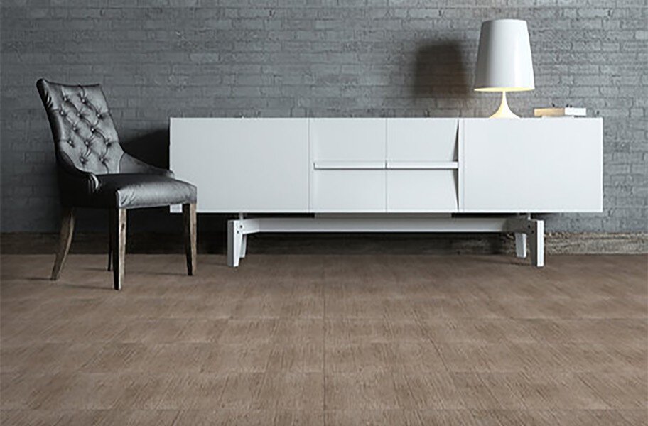 Deadwood Flex tiles have the same features as our other flex tiles, but boast a unique and weathered wood look. Easy to clean and maintain, Deadwood vinyl tiles are just as resistant to chemicals and solvents as our other flex tiles, and also provide anti-fatigue properties. Inspired by the rough and tumble of the Old West, these wood tiles are warmer and more comfortable than standard hardwood flooring. Sound absorbent and insulating, Wood Flex tiles are Made in USA and backed by a 10 year warranty. Wood pattern tiles are constructed with a proprietary blend of flexible PVC with a Luxury Vinyl top. This ensures that the tiles are flexible in order to have the anti-fatigue flooring qualities often associated with rubber flooring but also the long wear life and chemical resistance associated with vinyl tiles.