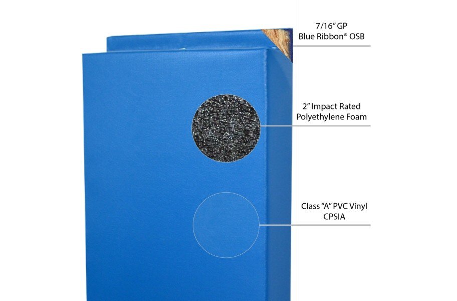 Our 2' x 4' Safety Wall Pads create a safe space in any facility to ensure athletes of all levels can push their limits and perform their best. These easy-to-clean and sanitize indoor fixed wall padding panels are antibacterial treated, antimicrobial, anti-fungal, UV treated, and resistant to mold and mildew. Expertly designed for the ultimate in impact-absorption and direct wall attachment, this style panel is a wood backed pad with 2” impact rated polyethylene foam laminated to the face using a two part adhesion process. This combination of foam and wood is wrapped front and sides and securely stapled onto the backing using Class “A” PVC Vinyl. 2' x 4' Safety Wall Pads are proudly Made in the USA with durable materials, and are backed by a 5-year limited warranty. Also great as protective wall padding for sensory rooms, and any other area where a safe cushioned space is desired.