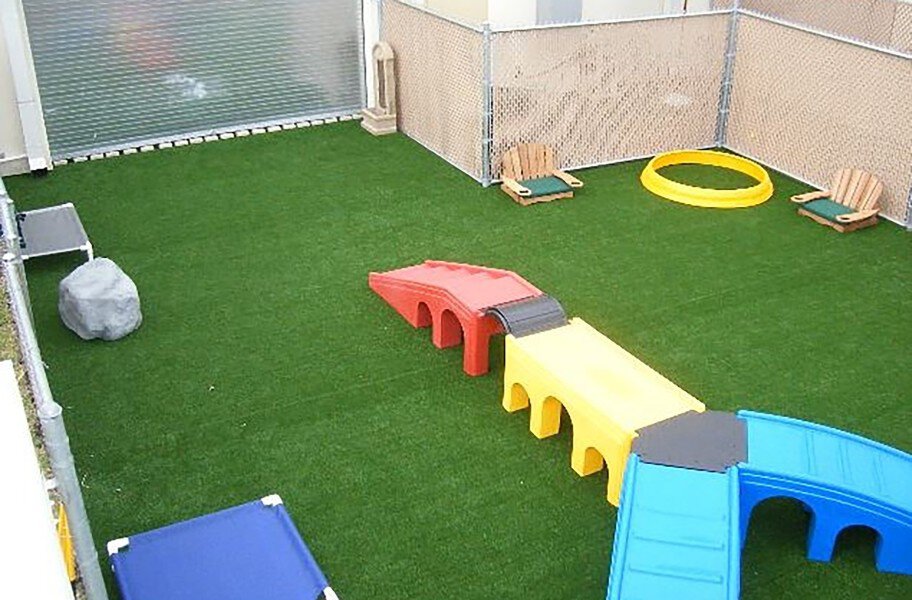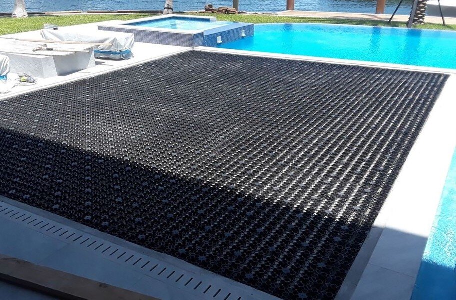 Airdrain is a geocell drainage grid tile that elevates the turf above the subfloor to allow air to circulate and water to pass through rapidly. This tile creates a 1 inch 92% air void underneath your artificial turf and helps to keep the surface temperature at lower levels due to its ability to allow a continuous movement of air. AirDrain works perfectly for pets as well because separates artificial grass from the subfloor such as concrete and directs the waste to predetermined drainage to allow the urine and waste to reduce odors and prevents bacterial buildup.