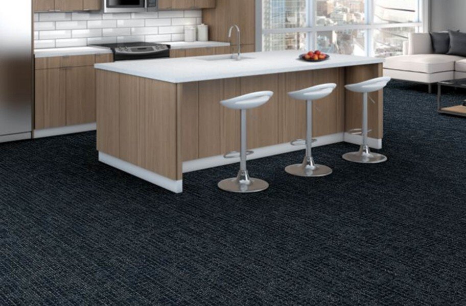 Weave It carpet tiles by Shaw are beautiful and a visual work of art. These unique modular carpet tiles are designed using a multi-level pattern loop, which creates depth and texture on the floor which you usually don't see. The textile appearance adds a modern yet classic feeling to any space of the office or the home. Weave It can be mixed and matched with it's matching product lines within the Fibers Arts collection: Knot It & String It for a look as unique as you.