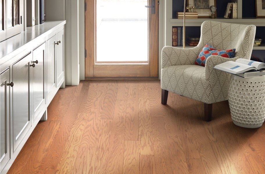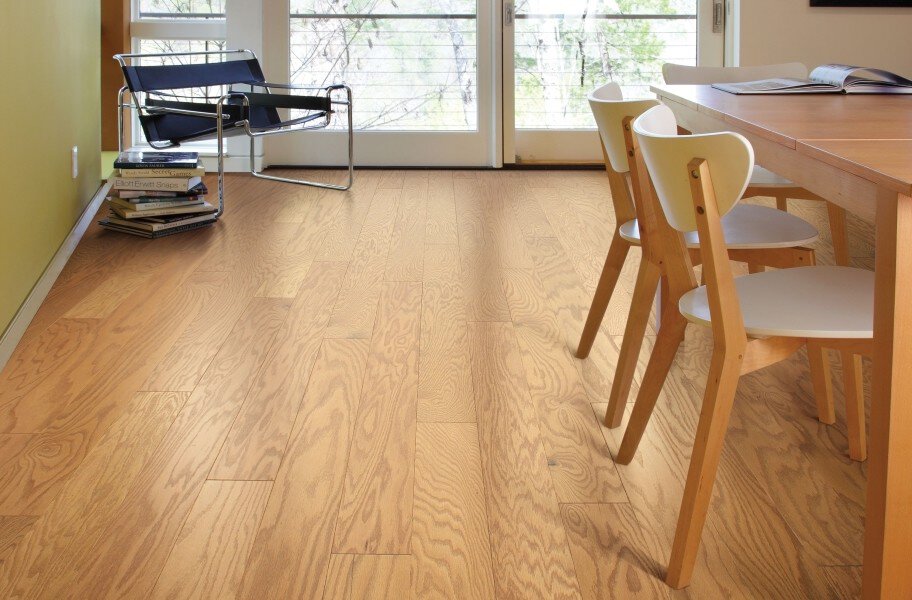 The Albright Oak engineered hardwood floor collection brings you a beautiful hardwood floor in a wide range of modern and classic colors. This real Red Oak plank flooring has a smooth surface finish and is available in a wide range of colors as well as in 3-1/4" and 5" widths. Microbeveled for a more distinctive look, installing these engineered wood planks is very easy even over imperfect or uneven subfloor. The Albright Oak manufactured floor comes with a ScufResist finish and is a great choice for high traffic households. This Red Oak hardwood floor also has a semi-gloss finish making scuffs and imperfections harder to see. The Albright Oak Collection is Made in USA and has a lifetime residential warranty. Material - Albright Oak Engineered hardwood flooring is made with a Red Oak veneer and Shaw's Epic+ Stabiltek core for lasting durability. Plank Width 3-1/4" or 5" Plank Length Random Length Edges Micro-beveled Thickness 3/8" Janka Rating 1889 Surface Type Smooth Wear Layer 1.5 mm Gloss 20%, Semi-gloss Installation Type Float, glue, nail, staple. Installation Location On, Above, Below Type of Finish Shaw ScuffResist Platinum Locking System Tongue and Groove Warranty Lifetime residential Character Variation High