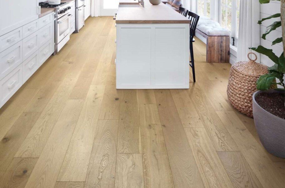 The Expressions White Oak engineered hardwood flooring collection from Shaw is an elegant wide plank hardwood floor with a real White Oak veneer that comes in several rich colors. The White Oak veneer is rich in character and variation with a low-gloss finish that helps mask scuffs and imperfections, making it easy to maintain. The engineered White Oak planks are 7-1/2" wide with micro-beveled edges and a wirebrushed finish. This White Oak hardwood flooring is easy to install with the tongue and groove design and is suitable for any room in the house. Shaw Expressions comes with a 50 year residential warranty. Material - Shaw Expressions is made with a real White Oak veneer and a durable HDF core. Plank Width 7.5" Plank Length Random Length Edges Micro-beveled Thickness 5/8" Janka Rating 1360 Surface Type Wirebrushed Wear Layer 4 mm Gloss 7%, Low-gloss Installation Type Float, glue, nail, staple. Installation Location On, Above, Below Type of Finish Scratch resistant UV Aluminum Oxide Locking System Tongue and Groove Warranty 50-Year residential Character Variation High