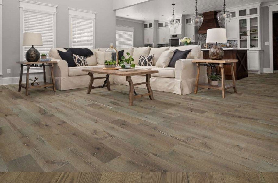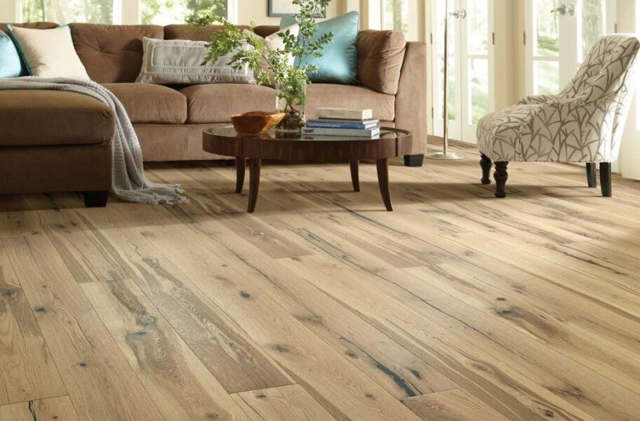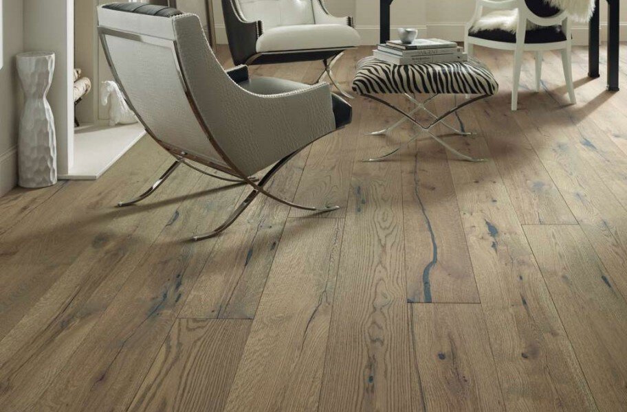 The Reflections White Oak engineered hardwood flooring from Shaw is designed for use in any room in your home. With Shaw's Repel technology you can install wood flooring in your kitchen, bedroom, or anywhere you choose without the worry of spills and moisture damaging your wide plank hardwood floor. Made with real White Oak veneer and an HDF core, these White Oak floors are rich in color and are finished in a low-gloss to help mask scuffs and imperfections. With the limited maintenance of tough engineered hardwood floors comes a lifetime residential warranty from Shaw to give you the peace of mind when installing Oak hardwood floors into your busy lifestyle. Material - Reflections White Oak floors are made with a tough HDF core and a real White Oak veneer. Each plank is protected with Shaw's Repel technology to improve water resistance. Plank Width 3-1/4" or 5" Plank Length Random Length Edges Micro-beveled Thickness 1/2" Janka Rating 1360 Surface Type Wirebrushed Wear Layer 1.2 mm Gloss 7%, Low-gloss Installation Type Float, glue, nail, staple. Installation Location On, Above, Below Type of Finish Shaw water resistant Repel technology Locking System Tongue and Groove Warranty Lifetime residential Character Variation High