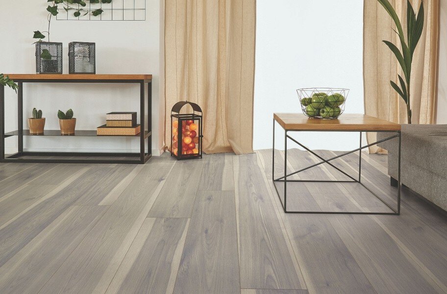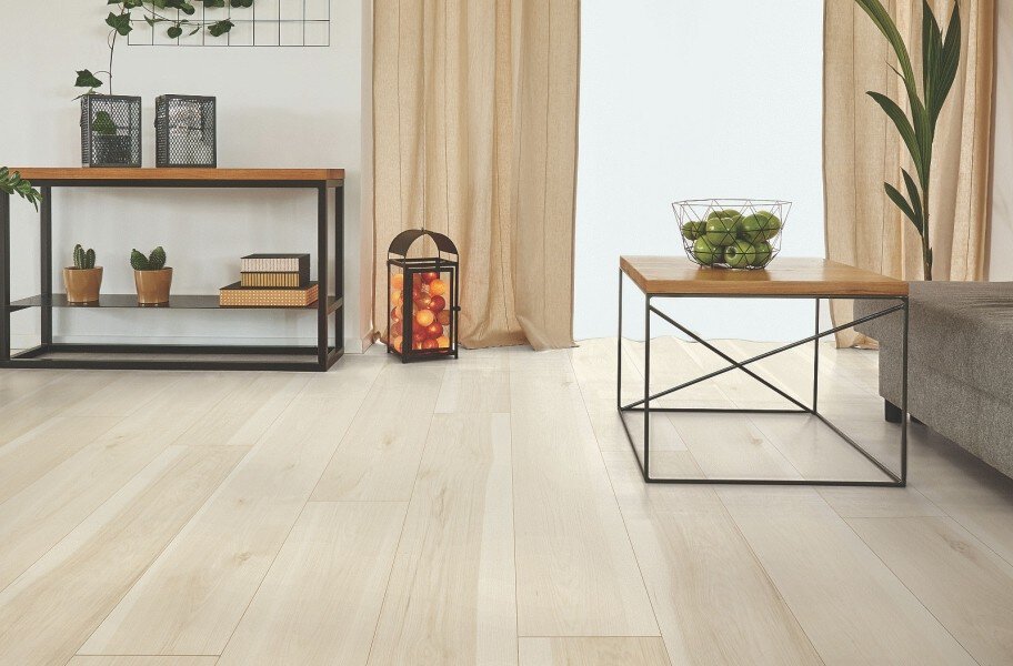 Laminate planks are easy to keep clean and maintain. Maintenance of the floor typically includes the following: Use a damp cloth to blot up spills as soon as they happen. Never allow liquids to stand on your floor. For tough spots, such as oil, paint, markers, lipstick, ink, or tar, use acetone/nail polish remover on a clean white cloth, then wipe the area with a damp cloth to remove any remaining residue. Sweep, dust, or vacuum the floor regularly with the hard floor attachment to prevent accumulation of dirt and grit that can scratch or dull the floor finish. Periodically clean the floor with cleaning products made specifically for laminate floor care. Do not wash or wet mop the floor with soap, water, oil-soap detergent, or any other liquid cleaning material. This could cause swelling, warping, delamination, and joint-line separation, and void the warranty. Do not use steel wool, abrasive cleaners, or strong ammoniated or chlorinated type cleaners. Do not use any type of buffing or polishing machine. For spots such as candle wax or chewing gum, harden the spot with ice and then gently scrape with a plastic scraper, such as a credit card. Be careful not to scratch the flooring surface. Wipe clean with a damp cloth. Use felt pads under chair and furniture legs to prevent scratching of the floor surface. Place door mats at all entrances to prevent tracked-in dirt, rocks, moisture, and other debris.