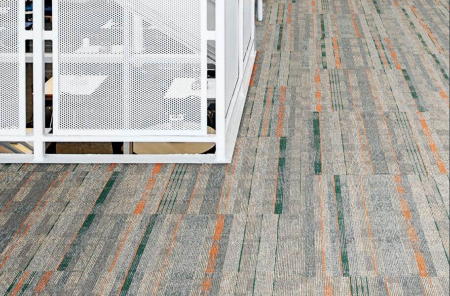 Contact Sport carpet tiles by EF Contract featured bold and beautiful color pops that are sure to look great in any office or store. These fun color combinations can bring out the competitor in all of us while providing a durable floor that is Class 1 Fire Rated and CRI Green Label Certified for indoor air quality. Recommended Installation Pattern - Quarter turn, ashlar, brick, monolithic Material - Constructed with Encore SD Ultima® Nylon with PROTEX® Soil Release technology and Nexus backing. Tiles are stabilized with a fiberglass reinforcement layer, are phthalate free and CRI Green Label Plus certified.