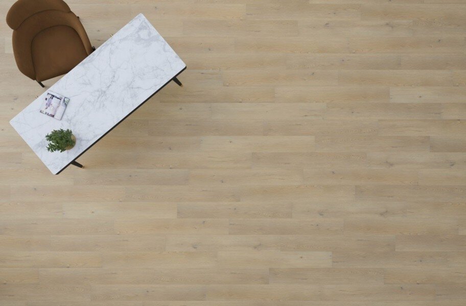 Maintenance of the floor typically includes: Daily or weekly vacuuming or dust mopping of dirt, grit, dust etc. Use felt pads under chair and furniture legs to prevent scratching of the flooring surface. Place door mats at all entrances to prevent tracked in dirt, rocks, moisture, and other debris. Avoid using rubber backed mats as they can stain the flooring surface over time. When mopping, use a damp and never a wet mop. Clean up spills immediately to prevent damage to the floor.