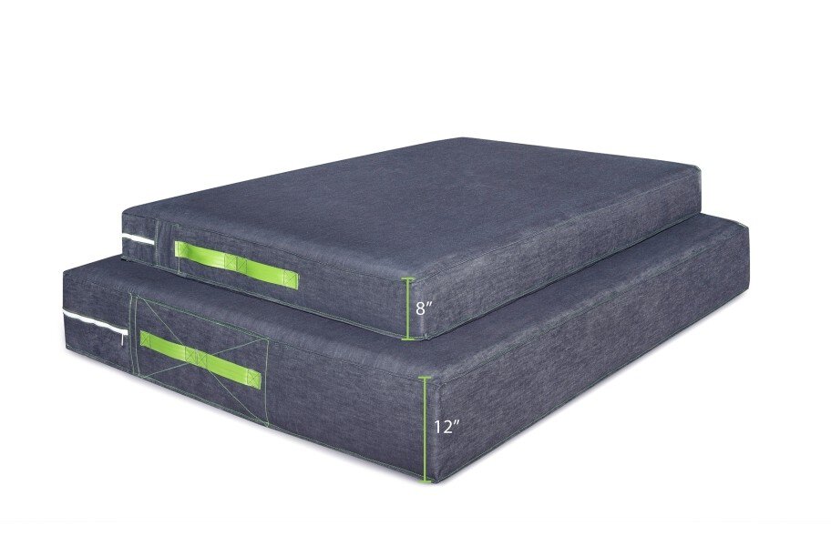 Our premium quality Skill Pillow Crash Mats offer the ultimate in impact absorption, and are engineered to ensure superior safety while softly cushioning landings and falls. Crafted in the USA with years of expertise, these durable gymnastics mats are built to withstand the rigors of training and provide long-lasting protection. Skill Pillow Crash Mats are a top choice for gymnastics facilities, climbing gyms, and home athletes seeking maximum protection during practice. Each Skill Pillow Crash Mat comes with heavy-duty sewn-in handles making them easy to move and a durable removable denim cover that can be easily washed. Includes 1 year manufacturers warranty covering any material or manufacturing defect.