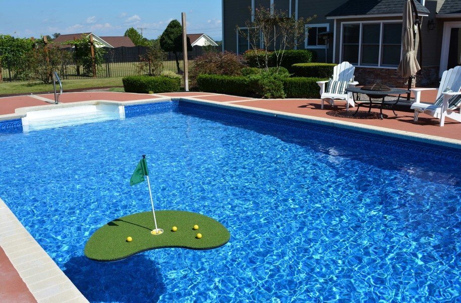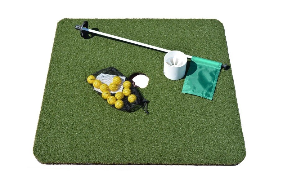 - •Also includes a small chipping pad, 12 floating golf balls, regulation size cup, and flag.