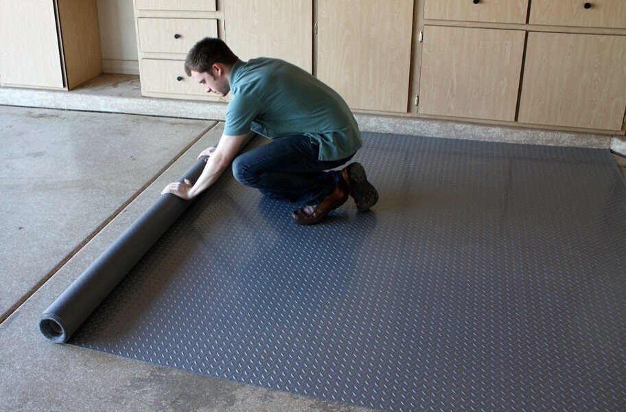 First, clean your floor so it is clean, dry, and free of debris. sweep dirt out of your garage and remove any lumps or excess cement/debris that might cause bumps on the surface.