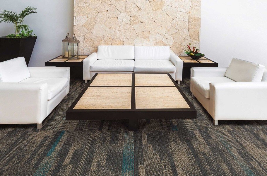 Elevation Carpet Tiles by Mannington are designed and inspired by the colors, patterns, and textures of Austin, Texas. It's made of ECONYL® 100% Regenerated Type 6 Nylon. This environmentally conscious material is made with a minimum of 50% recycled materials including fishing nets, industrial plastics, and consumer waste. This product line is the top choice for all modern eco-friendly buildings. This collection was specifically designed with a 3.5 TARR rating meaning it will hold to the heaviest of traffic in both commercial and home areas.