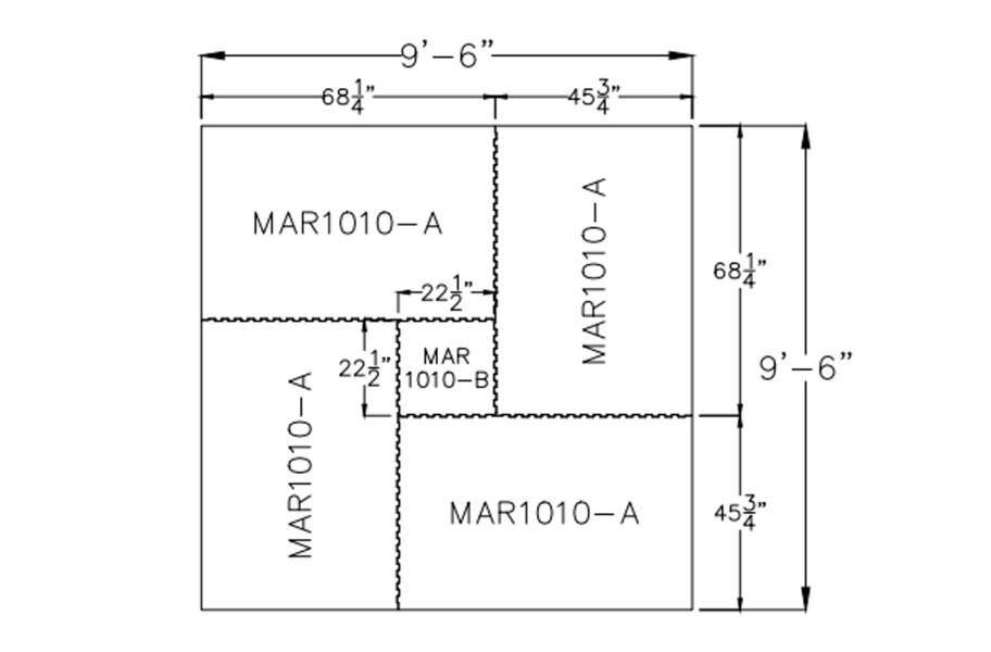 - 10' x 10' Kit - 4 - 45-3/4" x 68-1/4" corners, 1 22-1/2" x 22-1/2" center.