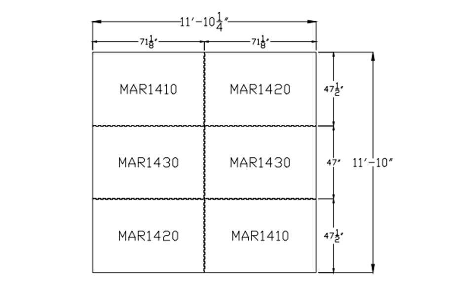 - 12' x 12' Kit - 4 - 47-1/2" x 71-1/8" corners, 2 - 47" x 71-1/8" borders.