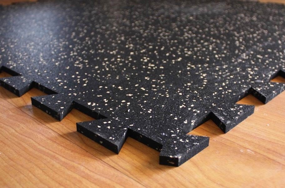 Description: Our 3/8" Tight-Lock Rubber Tiles are the definitive choice for everyone from the home user to the large-scale commercial user who desires easily installed rubber flooring. Each tile comes with removable edge pieces meaning the tile can be used as a border, corner, or center without custom cutting the tiles. These tiles are water jet cut to ensure the tightest fitting rubber tiles possible, so much so that the flooring appears seamless. Plus, they are safe indoors and out and can be loose-laid, so no adhesive is required.