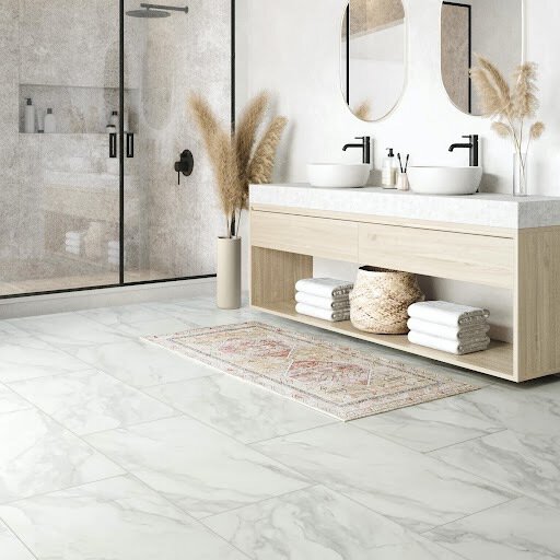 The Mannington Adura Apex Artemis Luxury Vinyl Tile is a perfect combination of style and durability. Hand polished and precisely cut, each tile features the stunning look of Carrara marble in a large format of 18" x 36". With dramatic natural movement and subtle color play this pattern will spark artistic vision providng elegance wherever installed. Artemis will provide endless spophistication and regent appeal to any room. As with all Mannington flooring, each tile features their famous ScratchResist surface finish for the ultimate durability in any busy home. Artemis is treated with Microban®, which helps protect 24/7 against the growth of bacteria and remain 99% cleaner than untreated surfaces. Backed by a lifetime residential warranty and FloorScore certified.