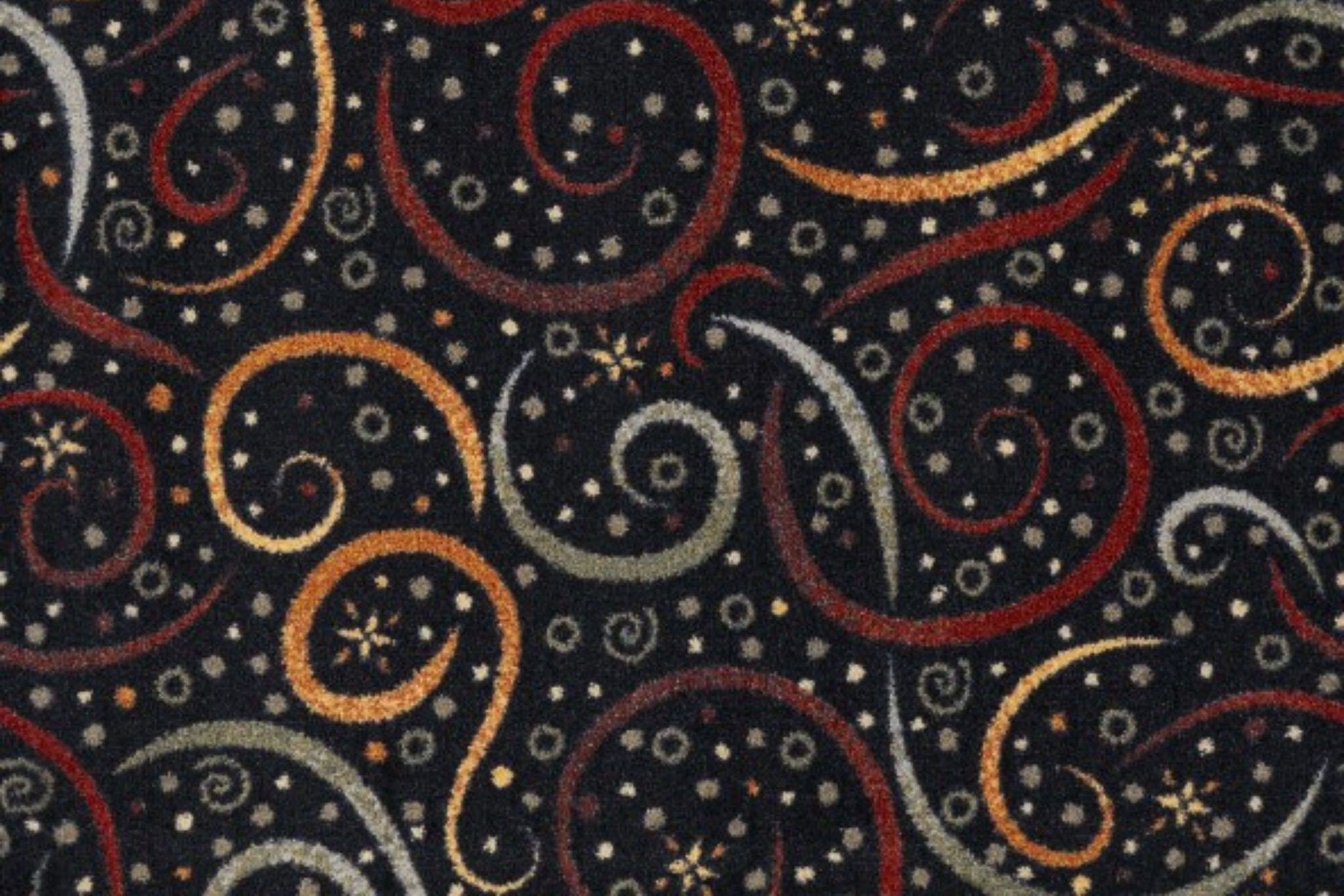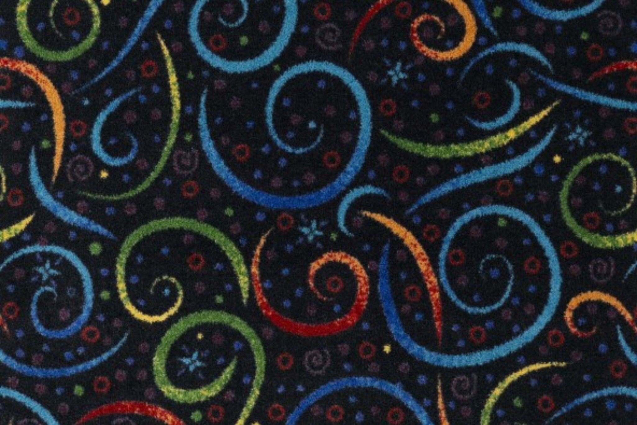 Transform your home theatre or movie theater into a dazzling escape with the Joy Carpets Splendido Carpet, a whimsical patterned carpet bursting with cosmic energy and swirling starbursts. This imaginative broadloom design adds visual excitement and a sense of wonder to media rooms, game rooms, and entertainment spaces. Made in the USA using high-performance WearOn® Nylon, it delivers exceptional durability, stain resistance, and vivid color retention. Certified by the CRI Green Label Plus program, this carpeting supports healthier indoor air quality and installs easily with standard carpet rolls. Let this vibrant home theater carpet set the stage for unforgettable movie nights and out-of-this-world style.