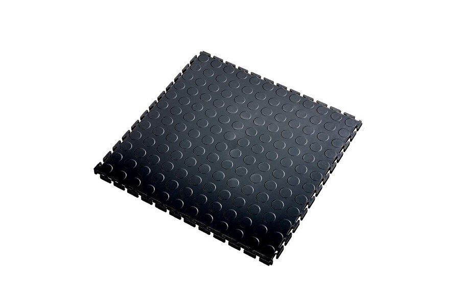 7 mm Coin Flex Tiles were designed to be premium multi-use floor tiles. These durable and yet slightly flexible floor tiles work exceptionally well as a garage floor tile however they also work well in a variety of other locations such as trade show exhibit flooring, workout room flooring, and basement flooring. The coin pattern design helps aid in providing a non-slip flooring surface that can still be easily cleaned. These garage floor tiles are also resistant to most solvents and chemicals and act as excellent thermal and acoustic insulation.