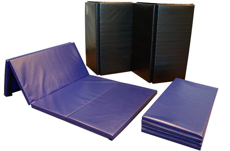 Folding mats offer a portable foam matting solution. These mats are covered with a durable vinyl mat covering and have a Velcro tab system on all four sides so that multiple mats can be connected to cover large areas, Material - Crosslink Polyethylene foam encased with 18 oz vinyl fabric, Size - Each mat is 4' x 8' (48" x 24" x 8" folded), Thickness - Available in 2.0" thickness, Weight - 23.2 lb.