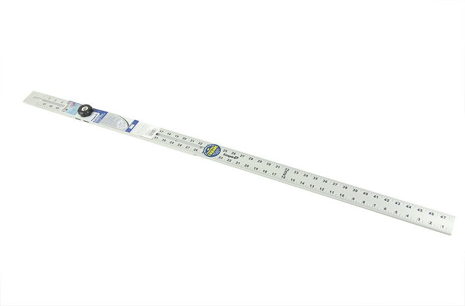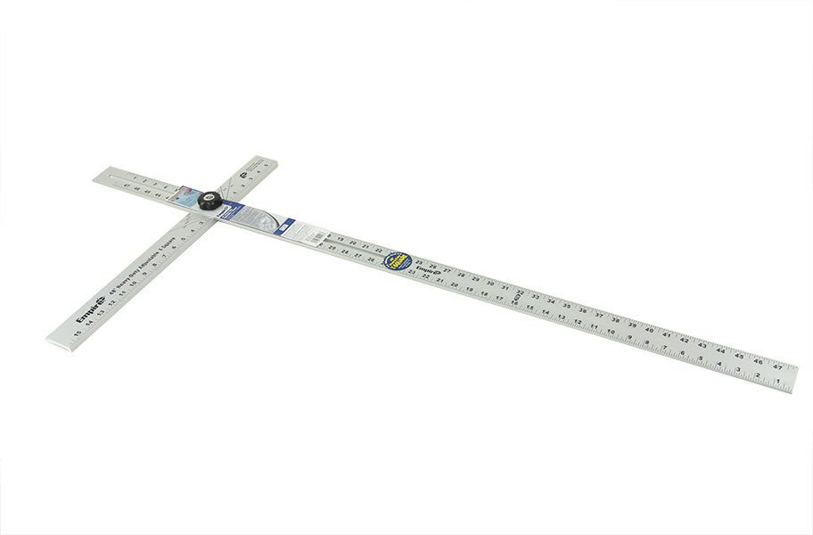 Our adjustable T-Square is foldable for easy storage and is fully adjustable to enable users to make angle marks and cuts. This square is also made of durable aluminum to ensure many years of service, Material - Aluminum Color - Silver with black markings, Size - 50" long when folded.