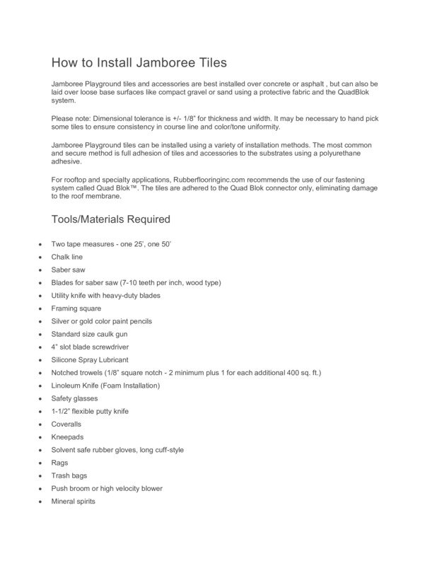 - For more detailed instructions on Jamboree Rubber Playground Tiles, please see the installation PDF.
