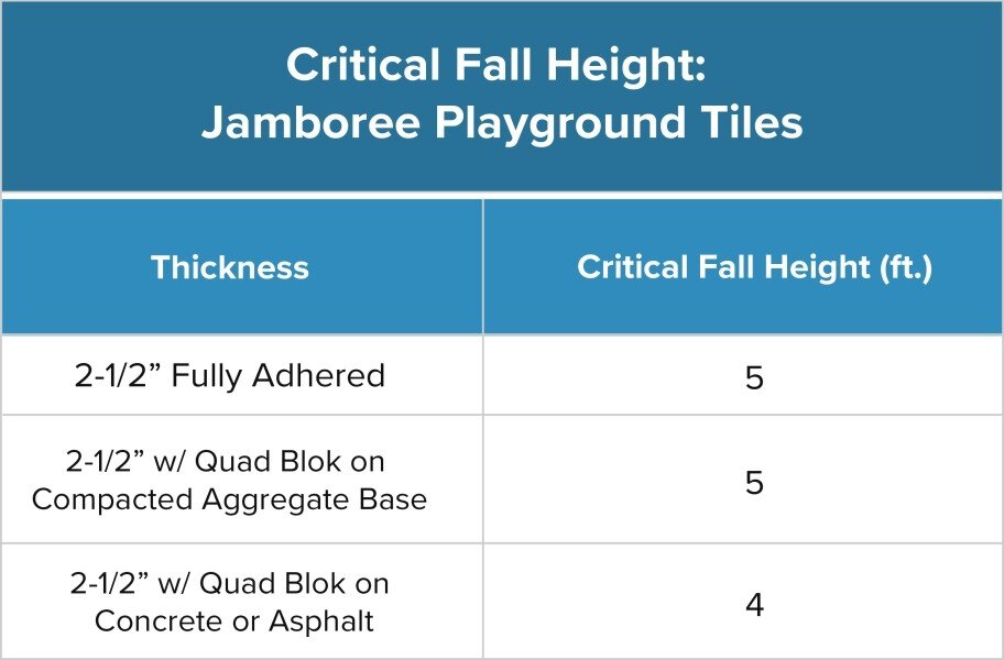 - When installing 2.5" thick Jamboree Playground Tiles™, one quad block connector is recommended for every Jamboree tile purchased.