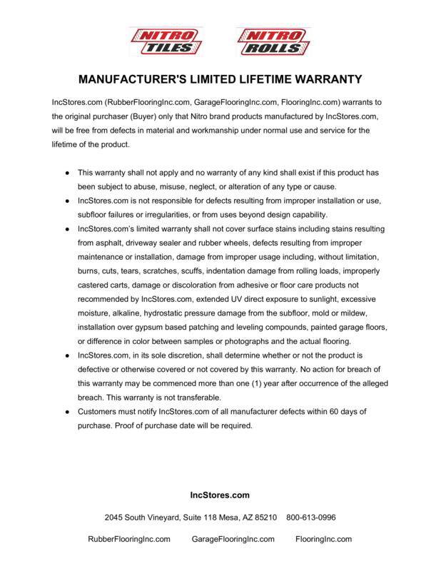 - •Limited Lifetime Warranty - Longest garage flooring roll warranty on the market