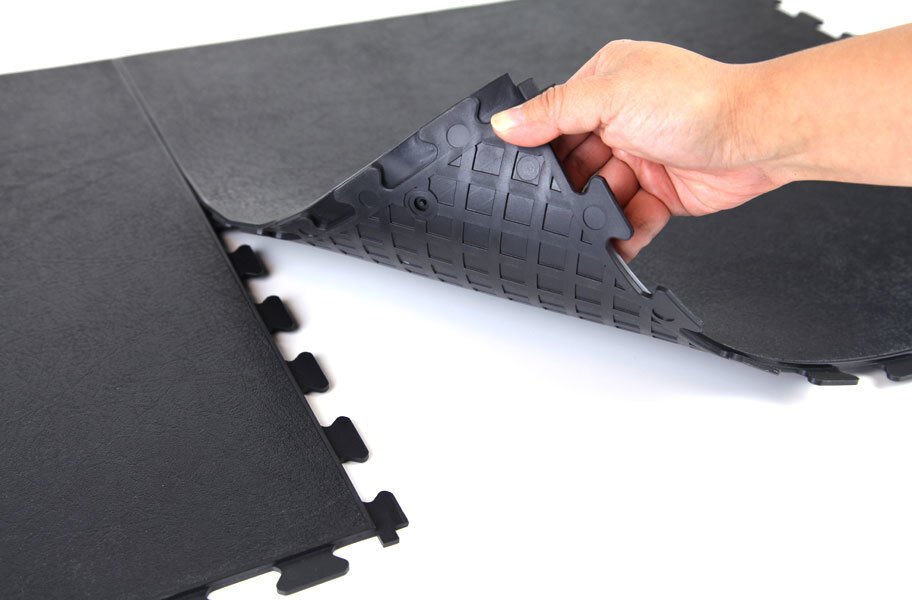 Our Smooth Flex Tiles feature a smooth, leather-like pattern that allows these tiles to not only be installed in garages but virtually any room in your home. This tile features a hidden interlocking system that provides the highest level of water resistance while giving you a solid clean look to your floor. Like our other flex tiles, these garage tiles offer resistance to most chemicals and solvents and help prevent fatigue during long periods of standing. These modular tiles are also very easy to install, only needing a sharp utility knife to cut the tiles to fit your space. These tiles are also mold and mildew resistant which is perfect for areas that have water issues.