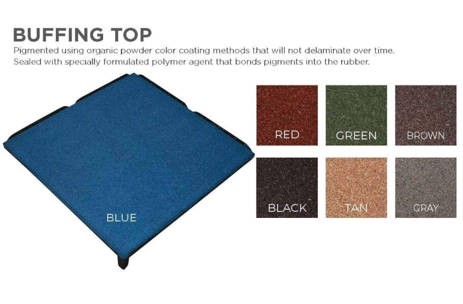Needing no adhesive or connectors of any kind, PlayTime Interlocking Playground tiles are one of the easiest playground floors to install. Available in several different thicknesses and several different colors, this interlocking rubber playground tile is one of the best options for any playground area. The tiles are equipped with a built-in alignment foot which allows for precise installation. The locking mechanism runs the entire perimeter to provide a more secure installation and will help minimize any curling or tile separation. This rubber tile collection also features some of the highest fall heights, ranging from 2' to 10', ensuring that all kids that play on this floor will be safe. Easier to manage than mulch and safer than rocks, these playground tiles are backed by a 10 year warranty and are the perfect playground flooring option for both residential and commercial applications. Great for both outdoor and indoor use, accessorize any play area with ADA accessible ramps and corners to create a clean, safe play area for all. Material - Recycled rubber, and paint are the primary materials. Standard painted solid colors can fade in the sunlight overtime like any rubber product however these colors are designed to provide the most attractive and durable outdoor painted tile surface available, Thickness - 1.5" thick (2 foot fall height rating), 2.25" thick (4 foot fall height rating), 2.75" thick (6 foot fall height rating), 3.25" thick (8 foot fall height rating), and 4.25" thick (10 foot fall height rating) tiles are available. Weight - 1.5" thick tiles weigh 24 pounds each, 2.25" thick tiles weigh 26 pounds each, 2.75" thick tiles weigh 29 pounds each, 3.25" thick tiles weigh 31 pounds each, and 4.25" thick tiles weigh 39 pounds each. Tile Width 24", Tile Length 24", Thickness 1.5", 2.25", 2.75", 3.25", & 4.25" Tile Weight 2.25" tiles: 26lbs, 2.75" tiles: 29lbs, 3.25" tiles: 31lbs, & 4.25" tiles: 39 lb Made in USA Yes Fall height certified Yes Fall height rating 2.25" tiles: 4", 2.75" tiles: 6', 3.25" tiles: 8', & 4.25" tiles: 10' Perforated for drainage Yes Recycled rubber Yes Shock absorbent Yes Please note - Tiles are 24" x 24", Ramp edges are 14" x 48". Outside corner are one piece and are 14" x 26" x 26". Inside corners are 1 piece and are 14" x 16" x 16".