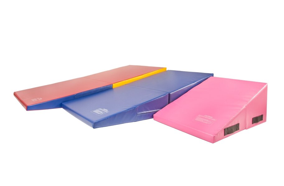 Our Gymnastics Cheese Wedge Mat - Folding Incline Mat is a great tool to teach basic rolls, walkovers, and hand springs and can be used as tumbling aids, crash pads, or landing mats. Gymnastics cheese wedge mats are an essential part of your young athlete's learning journey and it is important that they have the right tools that help them succeed safely. Easy to clean and maintain, these incline wedge mats are constructed of cross-link polyethylene foam encased in a 18 oz. vinyl covering, providing you with a soft-yet-durable tumbling mat. Our gymnastics incline mats are very convenient and can be easily moved and storage.