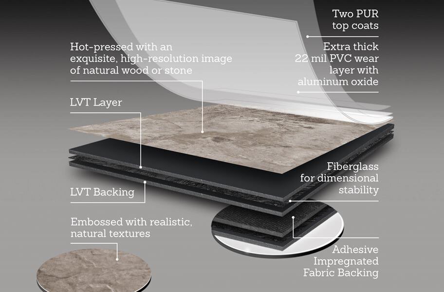 The perfect flooring solution for any DIY amateur or professional, these luxury vinyl planks require no glue. Whether you are looking for a modern flooring option in a range of realistic wood looks, or a classic approach with rich brown hues and warm tones, the Envee 4 mm Tacky Back Wood Vinyl Plank collection has something for you. The thick, heavy construction of this LVP flooring is perfect for commercial spaces such as restaurants, retail shops, and office buildings. Requiring no complex install preparation like seaming, glue, or staples, these planks can even be great for residential use. Backed by a 25 year warranty, you are sure to love your floors for years to come.