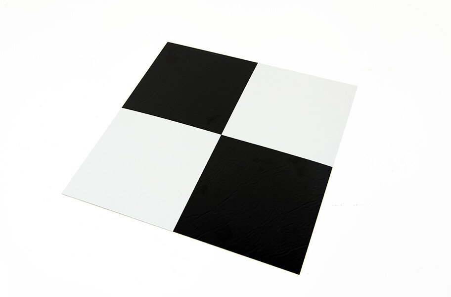 Solid peel and stick floor tiles are an excellent discount flooring solution for any room. Available in black, white, and black/white color options, these modern tiles are very easy to install and maintain. Helping to insulate the floor from noise and temperature transfer, these tiles make a great home office flooring, bedroom flooring, kitchen floor and more. You are sure to love this low cost black and white vinyl flooring for years to come.