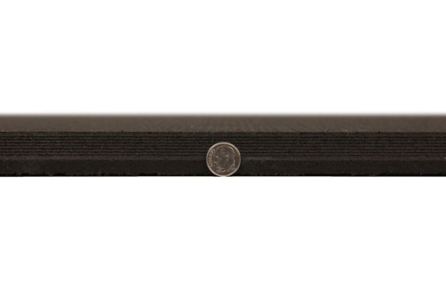 3/4" Shock Mats extra-durable rubber gym flooring will provide any space with incredible sound and shock absorption. These tough, interlocking gym mats are a massive 3/4" thick with a waffle pattern backing that absorbs vibration and impact noise. Sweat, weights, and mold are no match for these heavy-duty gym mats, so you can focus on your workout. These strong rubber mats go through a vulcanization process, which melts and compresses rubber buffings to give you non-absorbent, non-slip gym mats that are 3x stronger than standard 3/4" mats. Our 3/4" Shock mats are thicker than standard Olympic lifting rubber mats, and have beveled edges on all four sides to reduce any tripping hazard. Made in the USA, and backed by a 5-year warranty, these superior fitness mats offer superb gym flooring shock protection to commercial and residential gyms.