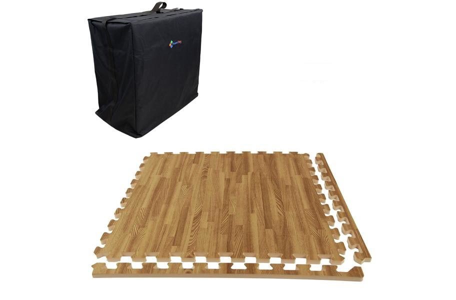 Choose between two attractive wood-grain foam tile trade show flooring kit options: a kit with a carry-along bag and one with a bag that has wheels. These highly portable wood-look foam floor tile kits fit a standard 10' x 10' trade show booth perfectly, providing you and your guests with both visual appeal and desirable comfort. Need a larger size floor? Shop additional matching tiles to customize your space HERE.