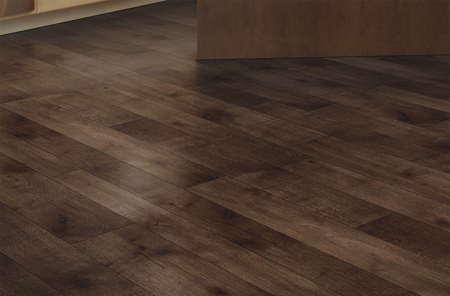Mohawk's Fieldcrest vinyl sheet flooring perfectly captures the beauty of natural stone flooring and timeless hardwood. Finished with grooved grout lines and wood hand scraping feel, this sheet vinyl flooring looks and feels like the real thing without the difficulty in maintenance and is safe for installation on any level.