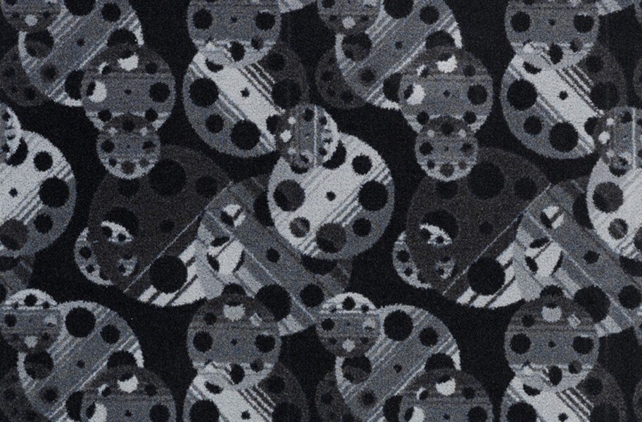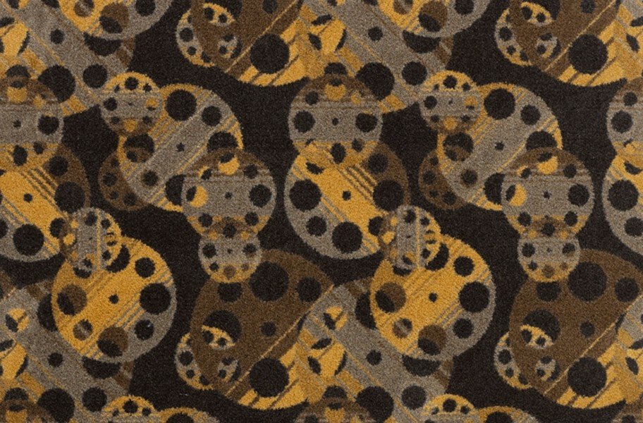 Immerse yourself in the nostalgia of classic cinema with Joy Carpets Reeling Carpet, featuring a delightful movie reel pattern that brings the magic of the movies to any residential or commercial space. This comfortable and easy-care broadloom carpet is a fantastic flooring choice for home theaters, cinemas, and even basements, adding a touch of cinematic flair. This stylish, American Made movie theater carpet is resistant to mold, staining, soiling and wearing and is backed by a lifetime warranty. Class 1 fire rated and Green Label Plus Certified ensures that this broadloom carpet is safe and very eco-friendly.