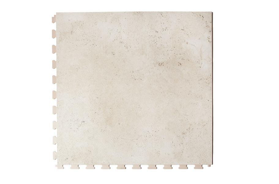 Want the look of travertine, but don't want to sacrifice your first born? Then buy our Stone Flex Tiles - Travertine Collection. These interlocking vinyl tiles will provide you with the look of natural travertine without all the hassle. Easy to install and maintain, these vinyl tiles will provide warmth and comfort wherever installed. Great in both homes and businesses, this vinyl tile is backed by a 10-year warranty. Stone pattern tiles are constructed with a proprietary blend of flexible PVC with a Luxury Vinyl top. This ensures that the tiles are flexible in order to have the anti-fatigue flooring qualities often associated with rubber flooring but also the long wear life and chemical resistance associated with vinyl tiles.