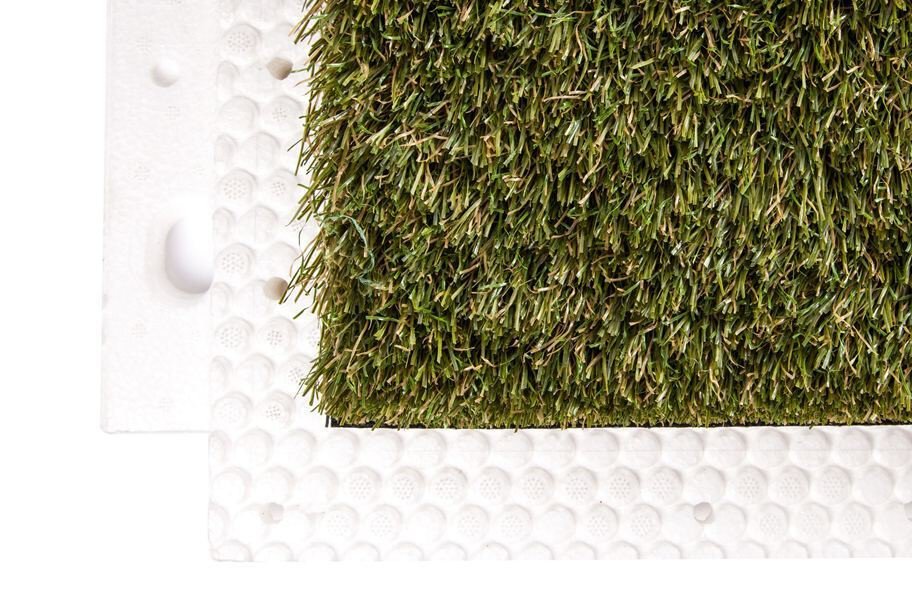 Rooftops are some of the only oasis' in the middle of a city and what is better than having turf on it. But one issue most people have with having flooring on a roof top is proper drainage. Wtih our Flo Through interlocking pad under your turf, this issue will be a non-issue. Easy to install, this foam pad will not only help to move water off your roof, but will also add extra comfort underfoot. Material - Expanded polypropylene Size - 42" x 61.1" Thickness - 23 mm Weight - approximately 5 lb.